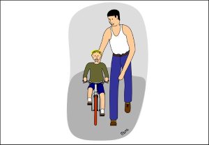 Le second essai en ligne droite fut concluant. Il courrait à côté de moi en me maintenant en équilibre. Je sentais sa main rassurante sur mon dos et je pédalais avec entrain.