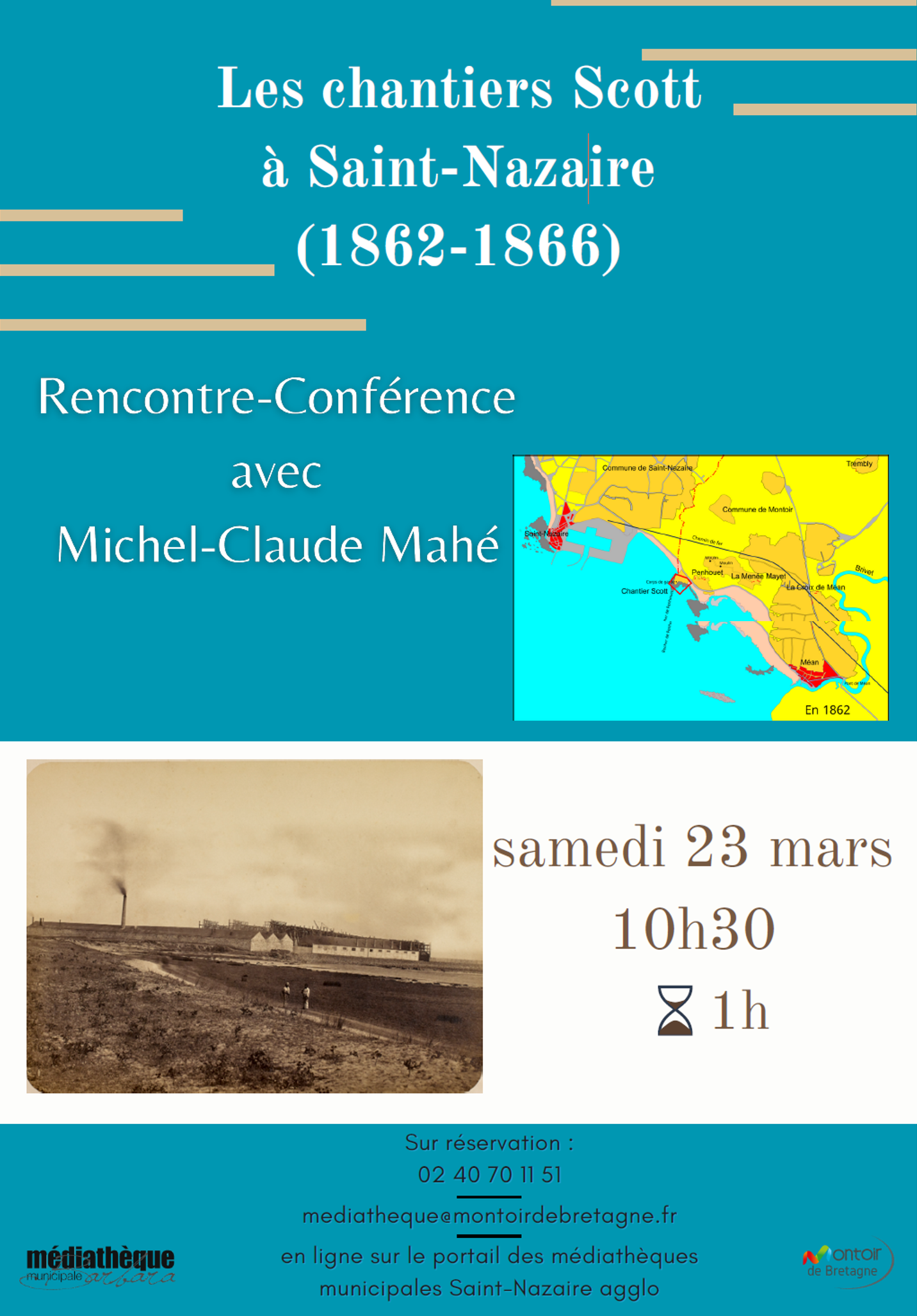 Je vous propose dans cette nouvelle conférence de continuer le voyage entrepris dans les deux derniers exposés : « L’estuaire en 1875 » et « Une famille montoirine en 1875 ». Dans la première, nous avons suivi le fleuve de Nantes à son estuaire, à la rencontre des différents ports, leurs trafics, les différents types de navires utilisés. Nous avons rencontré les principaux armateurs et des caractéristiques de leur flotte pour se positionner sur les différents marchés. Dans la seconde, nous avons rencontré un ménage de cultivateurs habitant Montoir, en Loire-Inférieure. Nous avons suivi toutes les étapes qui ont jalonné leur vie de couple. Nous en avons profité pour prendre une « photographie » de la vie à cette époque. C’était une évidence, en abordant l’industrie dans l’estuaire, il me fallait parler de la naissance de la construction navale à Saint-Nazaire à partir de 1862. Nous allons nous intéresser au chantier Scott aussi appelé chantier de Penhouet, ancêtre des Chantiers de l’Atlantique. Vous y trouverez une chronologie montrant : sa naissance, les navires construits, les problèmes rencontrés, sa fermeture, mais aussi son implication dans le volet social de Saint-Nazaire à travers le boom immobilier, les cités ouvrières, la société de secours mutuels du chantier…
