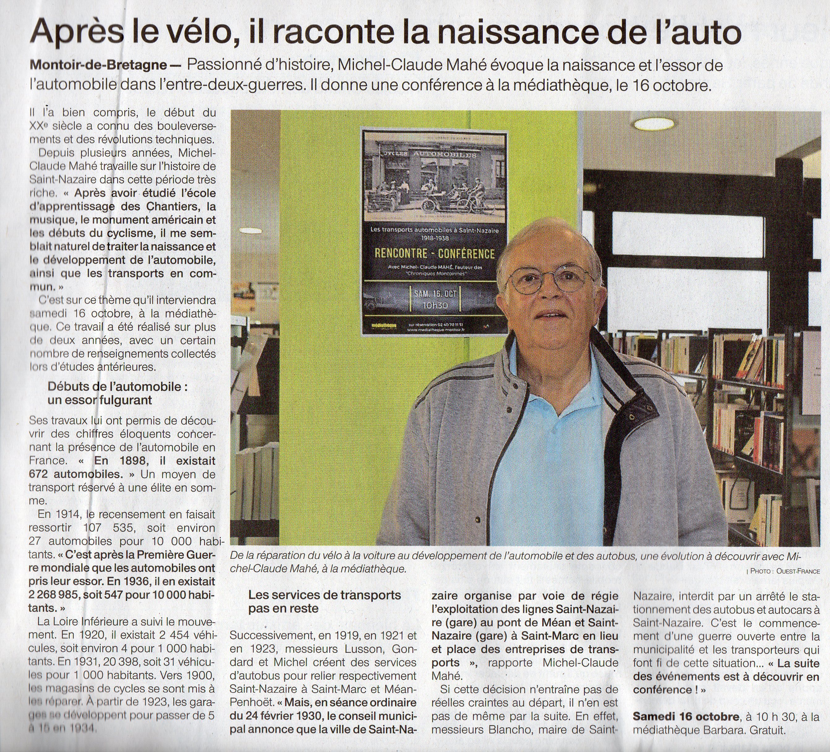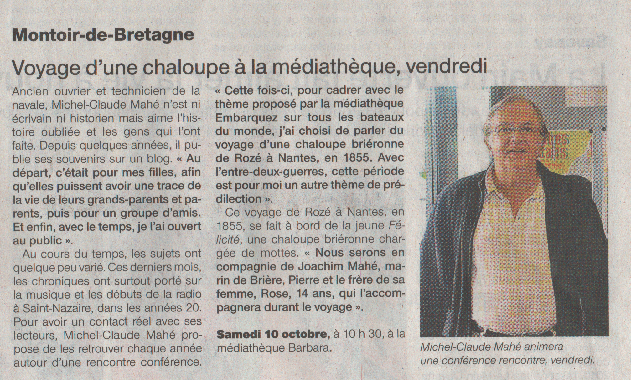 Vous êtes habitués à nos rendez-vous à la médiathèque Barbara de Montoir-de-Bretagne, nous l’appelons « conférence-rencontre » mais dans mon esprit, c’est plus une restitution périodique d’un travail de recherche mené depuis plusieurs années – au plus près des documents de l’époque – que j’ai plaisir à partager avec vous dans les articles de mon blog et les conférences. C’est un parcours dans le temps, un peu initiatique pour le novice que je serai toujours, pour mieux comprendre le présent.