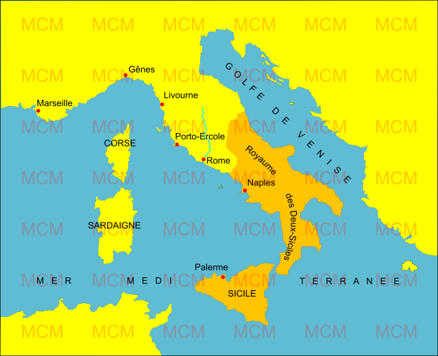 En 1816, Le royaume des Deux-Siciles était un état souverain avec Naples pour capitale. Il se composait du royaume de Naples et de celui de Sicile.